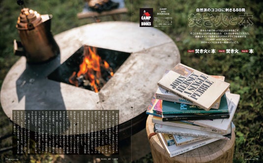 さらに、今号の大特集は「焚き火と本」。自然派のココロに刺さる88冊を厳選紹介! 焚き火を前に読みたくなる本から、焚き火前の読書空間の作り方や、本を読みながら焚き火で作るつまみもご紹介。この特集を読めば、焚き火にあたりながら、本を読みたくなりますよ!
