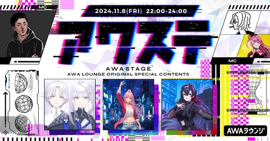 AWA株式会社(本社:東京都港区、代表取締役CEO:冨樫晃己)が運営する、サブスクリプション型(定額制)音楽ストリーミングサービス「AWA(アワ)」は、2024年11月8日(金) 22:00より、無料で誰でも参加できるオンライン空間「ラウンジ」で、ネットシーンを中心とした注目アーティストなどを毎回ゲストに招き、有識者であるMCとともにシーンの次のステージを切り開く番組「AWAステージ(通称:アワステ)」の第37回を開催いたします。