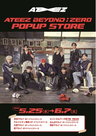 渋谷マルイ、マルイシティ横浜、大宮マルイ、柏マルイ、なんばマルイ、博多マルイ(株式会社丸井 本社:中野区中野、代表取締役社長 青野 真博)と名古屋セントラルパーク地下街の7会場にて、韓国の8人組ボーイズグループ「ATEEZ(エイティーズ)」のポップアップストア「ATEEZ BEYOND : ZERO POPUP STORE」を同時開催いたします。