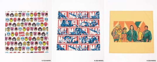 50 cm×50 cmの大判サイズでマルチに使えるオリジナルの総柄バンダナ。ハンカチとしてはもちろん、スタイリングのアクセントやカバンに巻いたり、お弁当を包むなどマルチに使える万能アイテムです。人気キャラクターのポップなアートや、「ロキ」のカッコよくて渋いアート、『MARVEL』ロゴとヒーローアートがミックスしたデザインなど、アートによって様々な表情が楽しめるのも魅力なアイテムです。