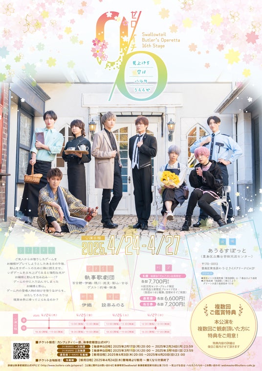 執事歌劇団第16回公演『0/O(ゼロイチ) ~見上げる空は ハルカうららか~』が2025年4月24日 (木) ~ 2025年4月27日 (日)にあうるすぽっと(東京都豊島区東池袋4-5-2)にて上演されます。