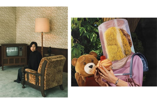 1978 年生まれ、西宮市在住。西のペインティングを特徴づけるシュールリアリズムの表現は、理想化された 20 世紀半ばのアメリカ的なノスタルジーを感じさせるものである。彼女が描く世界の牧歌的な風景は、顔のない人物像や感情を持たないぬいぐるみ、生気を感じさせない動物たちによって構成される。そのどこか現実離れした夢のような光景は好奇心と不快感を掻き立てると同時に、光と影によるドラマチックな演出や、安全で快適な家庭内の空間に突如持ち込まれる不和は、不条理、ニヒリズム、パラノイアと行ったネオ・ノワールのテーマを想起させる。西の作品は彼女の周りのメディアから引き出されたイメージの集合体であり、現実と嘘構の間に存在する四次元の世界に入り込むことで、私たちに何が現実で何が現実でないのか、その認識の再考を迫る。京都芸術大学を卒業後、国内外のギャラリーやアートフェアにて絵画やミクストメディア作品を発表している。近年のプロジェクトには個展「Index #7」がある。その他のグループ展やアートフェアには、IMAGRATION (Each Modern、台北 )Intersection of Monsoons (Tang Contemporary Art、香港 )、Art Fair Tokyo、TaipeiDangdai などがある。