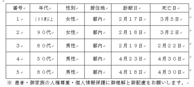 2022-05-07 東京都 新型コロナウイルスに関連した患者の死亡について Tweet ~新型コロナウイルスに関する東京都からのお知らせ~ 都内で新型コロナウイルスに感染した方が死亡されましたのでお知らせします。 お亡くなりになった方のご冥福をお祈り申し上げます。 企業プレスリリース詳細へ PR TIMESトップへ 公式ツイッター Follow @Straightpress 最新情報をTwitterで受け取ろう! 公式フェイスブックページ 最新情報をFacebookで受け取ろう! 前の記事 一覧へ戻る 次の記事