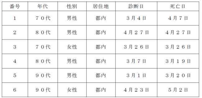 都内で新型コロナウイルスに感染した方が死亡されましたのでお知らせします。