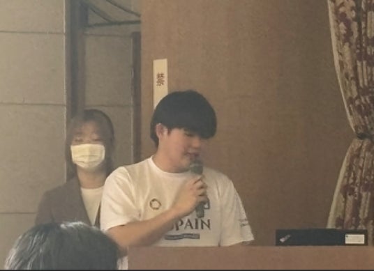 岡山大学からは、2組が登壇しました。岡山大学SDGsアンバサダーに所属する医学部保健学科3年の森本翔大さんをリーダーとするチーム「COPAIN」は「デジタル田園都市国家構想と岡山市での適用」と題し発表。デジタル田園健康特区に指定された吉備中央町での地域の祭りへの出店を通じて住民と交流しながら、デジタル化推進の啓発を行った経験を踏まえ、その成果の岡山市での適用と今後の展開について報告しました。