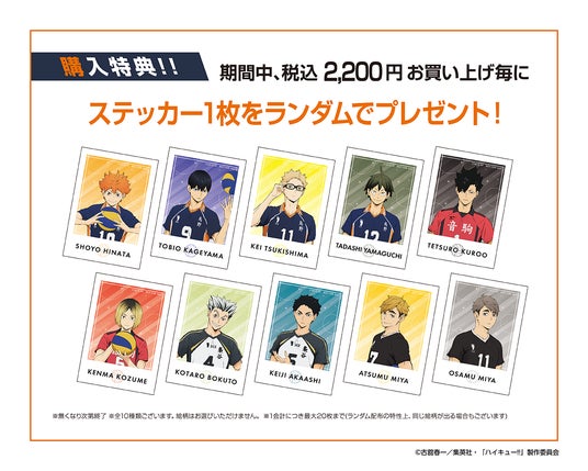期間中、税込2,200円お買いあげ毎にステッカー1枚をランダムでプレゼント!