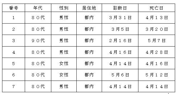 都内で新型コロナウイルスに感染した方が死亡されましたのでお知らせします。