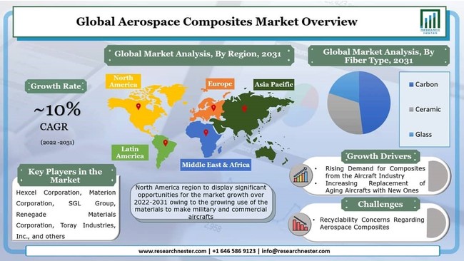 世界の航空宇宙複合材料市場は、2022ー2031年の予測期間中に約10%のCAGRで成長することにより、多額の収益を獲得すると推定されています。