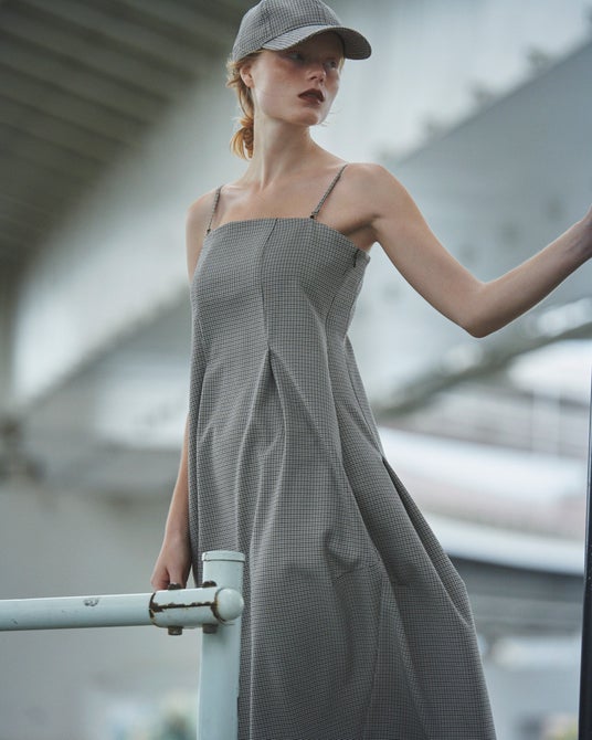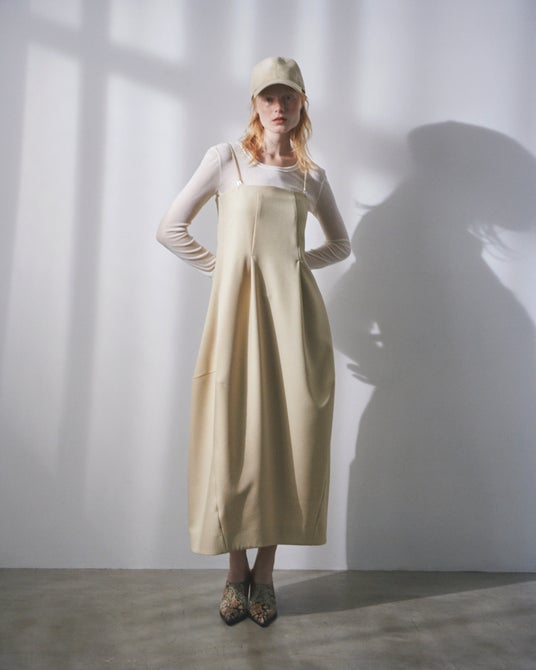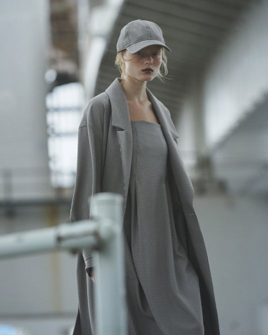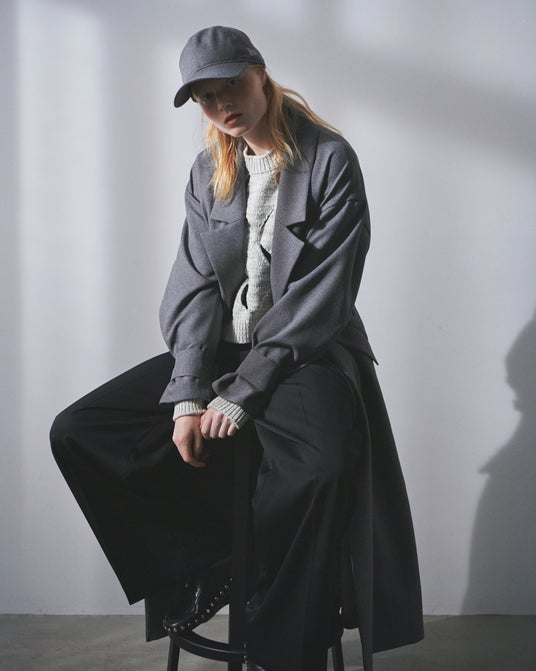 キャップと同じ、イージーケア性に優れ、毛玉にもなりづらい機能性を備えた柔らかいウールライクファブリックLANATEC生地を使用したトレンチコートとキャミソールワンピースのラインアップ。