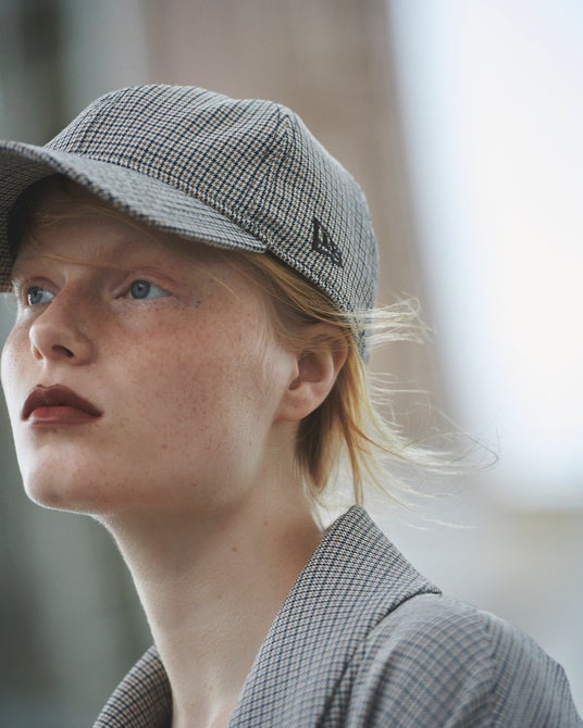 スーツ地のキャップはカジュアル過ぎず、マニッシュなムードでコーディネートの幅が広がります。