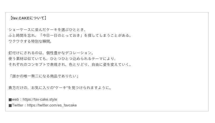 ※「P.A.shots!! -debut collection-」の先行販売は、「fav.CAKE」ブランドECサイト