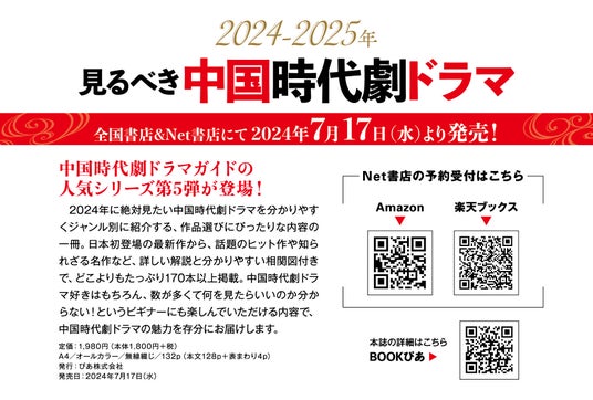 ぴあ株式会社より、「2024-2025年見るべき中国時代劇ドラマ」が7/17(水)に発売します。