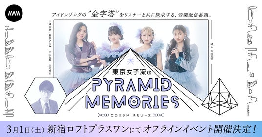AWA株式会社(本社:東京都港区、代表取締役CEO:冨樫晃己)が運営する、サブスクリプション型(定額制)音楽ストリーミングサービス「AWA(アワ)」は、ユーザー同士がリアルタイムに、同じ空間で同じ音楽を楽しみながらチャットができるオンライン空間「ラウンジ」にて配信中の公式番組『東京女子流のピラミッド・メモリーズ』のオフラインイベントを行います。