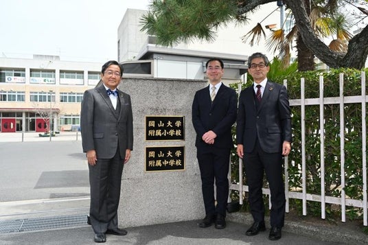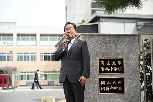 国立大学法人岡山大学(本部:岡山市北区、学長:那須保友)の2025年4月1日、本学附属小学校および中学校は教育学部附属から大学附属学校に改組し、附属小学校正門にて表札の除幕式を挙行しました。