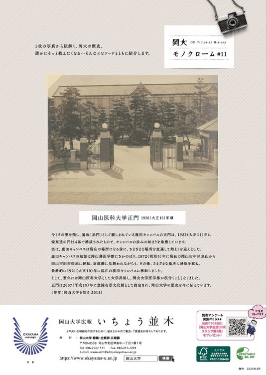 国立大学法人岡山大学(本部:岡山市北区、学長:那須保友)は、本学の活動などを紹介する広報誌「いちょう並木」のVol.108を発行(発行:2025年4月1日)しました。