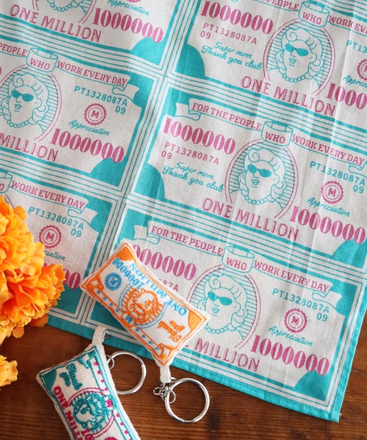 畳むとまるでお札のようになるユニークなハンカチは、正方形ではなくデザインを活かしたサイズ感に。ユーモアと日頃の感謝を込めて、何枚か重ねて札束風の形にしてお渡しすると、お母さんを笑顔にすること間違いなし!