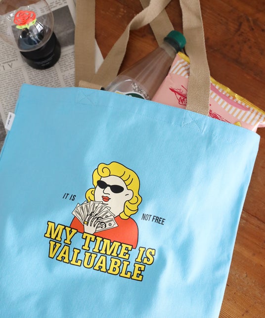 カラフルな色合いにSuper Momのデザインがインパクトのあるトートバッグ。