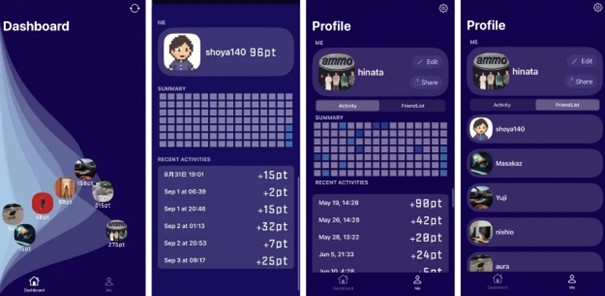 新しい形のヘルスケアアプリ。他人に体重は公表せず、自分自身の運動量などをポイント化し、友だちと共有。安心して、競争しながらゲーム感覚でモチベーションを下げずに楽しくダイエットや健康維持が継続できるアプリ。