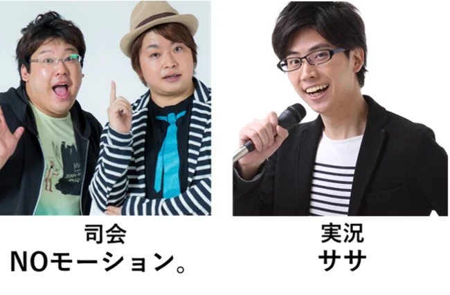 また、フランス&スペイン&ポルトガル大会では、「ストIIものまね」でおなじみのNOモーション。さんが司会進行を務めます。そして、実況にはeスポーツキャスターのササさんをお迎えします。