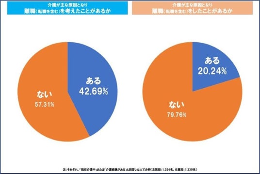また、「介護が主な原因となり、離職(転職を含む)をしたことがありますか」という質問では、