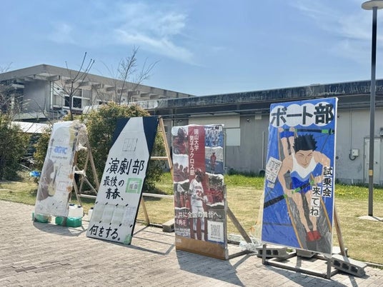 4月といえば新入生勧誘活動の時期!本学津島キャンパス(岡山市北区)は、たくさんの校友会と同好会による新入生勧誘活動で盛り上がっています。