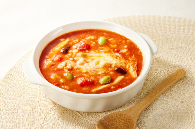 トマトスープごはんでは、「もち麦」や「豆」を、酸辣湯では、「きくらげ」などの歯ごたえのある具材を使用しているため、よく噛むことを促し満腹感を得られやすくしています。