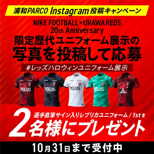 浦和PARCO公式Instagram(@parco_urawa_official)をフォロー&NIKE FOOTBALL×URAWA REDS 20th Anniversary限定歴代ユニフォーム展示の写真を投稿した方の中から抽選で2名様に、選手直筆サイン入りユニフォームをプレゼント!
