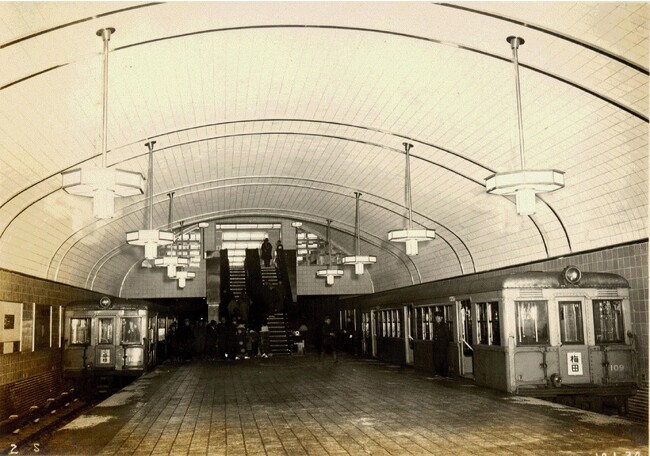 大阪の街をかけめぐる市電のジオラマは、2013年に実施した開業80周年コラボレーション企画の目玉としてホテルロビーに展示し、好評を博しました。今回は本年4月に心斎橋駅がリニューアルされたことも祝し、ジオラマとともに御堂筋線開業当時の貴重な写真や歴代車両の写真をパネルで紹介します。(入場無料)