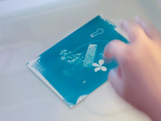 写真の古典技法であるサイアノタイプを用いた写真プリントのワークショップ。お客様にお持ちいただいた物を写真に収め、自然光でプリントします。