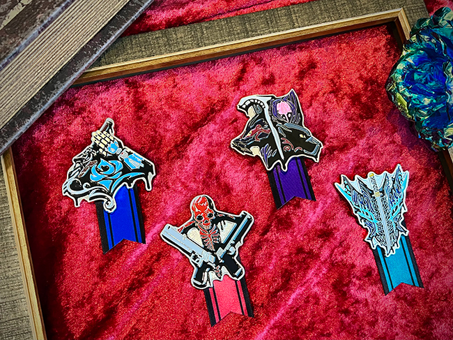 ■ネロ、ダンテ、V、バージルの4人を象徴するエンブレムが重厚感あるブローチに。