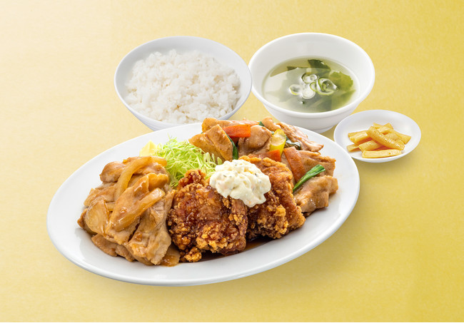 「肉肉(ツーミート)定食」は、生姜焼きと豚焼肉が合盛りになった定食で、さらにチキン南蛮もプラスした「肉肉肉(にくざんまい)定食」もご用意しております。