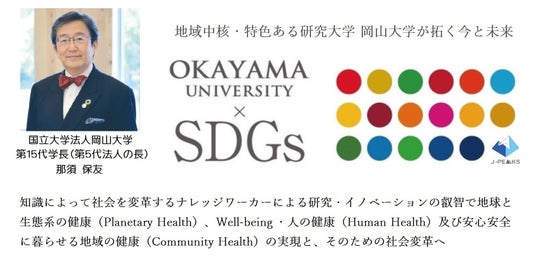 国立大学法人岡山大学は、国連の「持続可能な開発目標(SDGs)」を支援しています。また、政府の第1回「ジャパンSDGsアワード」特別賞を受賞しています。地域中核・特色ある研究大学として共育共創を進める岡山大学にご期待ください