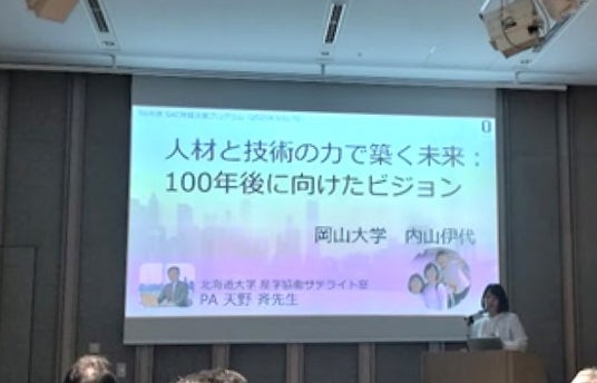 さらに本イベントでは、本学医学部病原細菌学分野の内山伊代客員研究員が、SBIR支援の一環である「SAC(スーパーアグリクリエーター)発掘支援プログラム」における研究成果を発表し、アグリ・フードテック分野での将来が期待される若手研究起業家として「SAC」に認定されました。これは所定の審査を経て選出されたもので、岡山大学としては初のスーパーアグリクリエーター認定であり、快挙となります。