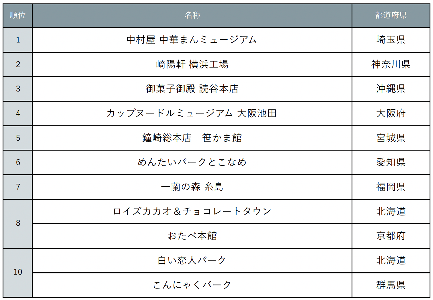 ■人気商品から地域の名物まで、見て・学んで・味わえる体験型の工場見学がランクイン