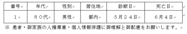 2022-06-07 東京都 新型コロナウイルスに関連した患者の死亡について Tweet ~新型コロナウイルスに関連した東京都からのお知らせ~ 都内で新型コロナウイルスに感染した方が死亡されましたのでお知らせします。 お亡くなりになった方のご冥福をお祈り申し上げます。 企業プレスリリース詳細へ PR TIMESトップへ 公式ツイッター Follow @Straightpress 最新情報をTwitterで受け取ろう! 公式フェイスブックページ 最新情報をFacebookで受け取ろう! 前の記事 一覧へ戻る 次の記事