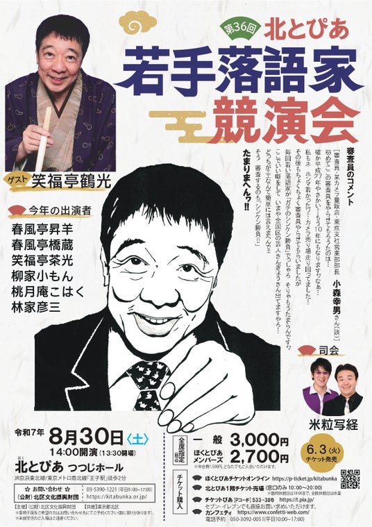 北区文化振興財団主催、『第36回北とぴあ若手落語家競演会』が2025年8月30日 (土)に北とぴあ つつじホール(東京都 北区 王子 1-11-1)にて開催されます。