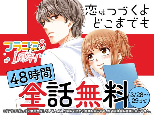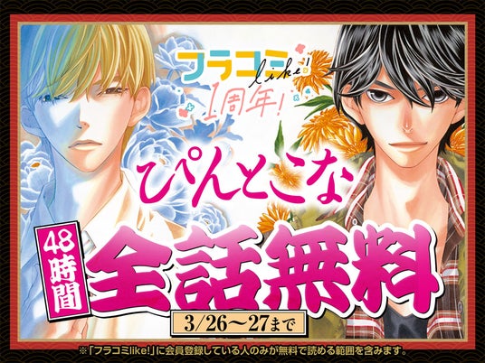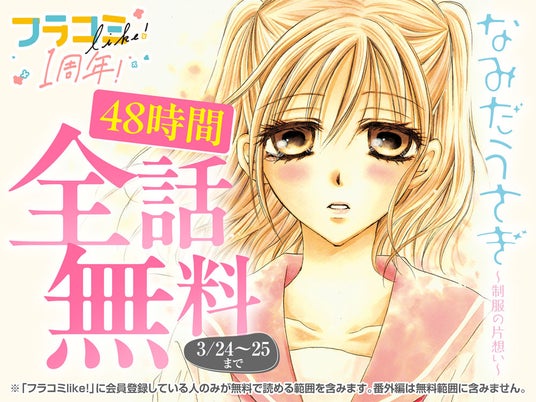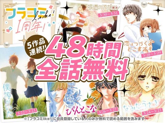 「フラコミlike!」1周年記念48時間全話無料キャンペーン特集ページ