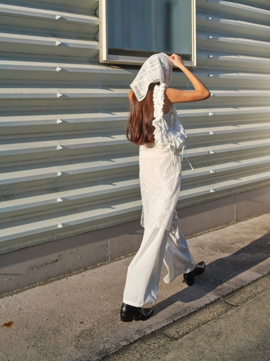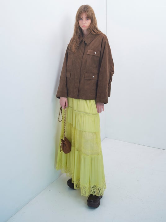 繊細なレースや刺繍のディテール、スウェードマテリアルやスカーフを取り入れたスタイリング。