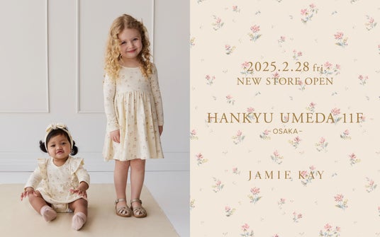 株式会社マッシュスタイルラボ(本社:東京都千代田区/代表取締役社長:近藤広幸)は、ニュージーランドの高品質なオーガニック素材を使用し、世界中にファンを抱える人気の子ども服ブランド「JAMIE KAY(ジェイミーケイ)」の、関西初となる店舗を2025年2月28日(金)に阪急うめだ本店11階にオープンします。オープンを記念して、限定商品やノベルティーをご用意いたします。