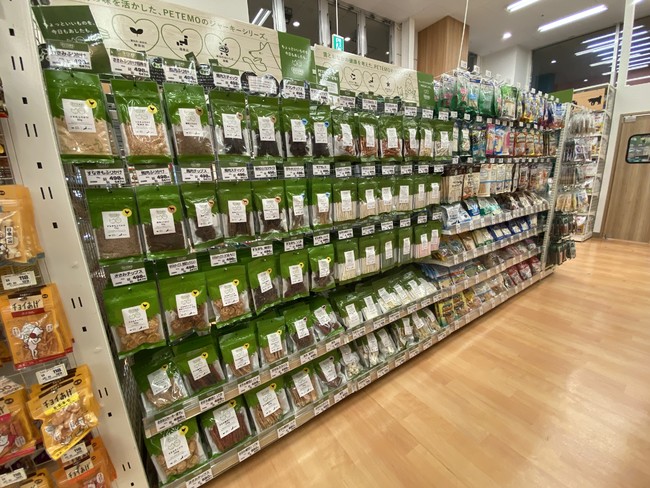 この度のリニューアルでは、ペット用品売場の面積を拡大し、近年のお客さま需要が高まっている犬猫用おやつの取扱い数を1,5倍に拡大します。また、犬・猫・小動物といったジャンルごとに売場レイアウトを分けることで、お客さまにわかりやすく快適なお買物環境を提供します。