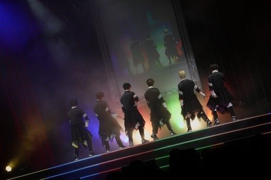 開演時間になるとベルの音が鳴り、一気にライブの世界へ。アナウンスが「人々に安寧をもたらす運命(さだめ)に導かれし者たちが約束の大地に集う。今、そんな彼らの物語が再び動きだす」と告げると、「YELL」衣装に身を包んだメンバーがステージに姿を現した。