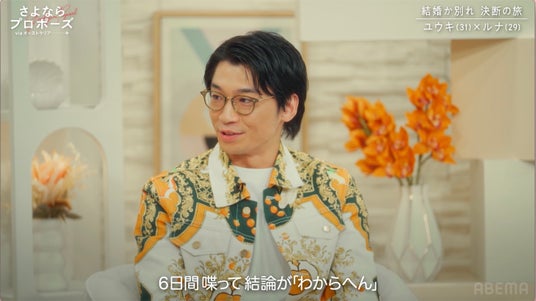 さらに、結婚に踏み切れないユウキ(30)と、30歳までの結婚を願うルナ(29)のカップルも、決断の日を前に波乱の展開を迎えます。ユウキは「結婚して幸せになるイメージが湧かない。いつか稼げるようになったら、くらいにしか考えていなかった。でもこの旅では、結婚するか別れるかを選ばなければならない…今はまだわからない」と涙。この姿に、MCのさや香・新山も「6日間話し合って結論が『わからへん』って…(笑)。人間としての魅力、可愛げがすごすぎる」と思わずコメント。果たして、結婚と出産を望むルナは、苦悩するユウキにどのような言葉をかけるのか…?