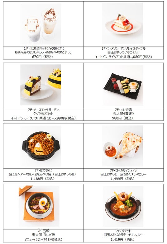 目玉おやじや鬼太郎など、人気キャラクターを表現した全8種のオリジナルメニューが登場!