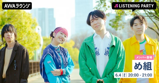 AWA株式会社(本社:東京都港区、代表取締役CEO:冨樫晃己)が運営する、サブスクリプション型(定額制)音楽ストリーミングサービス「AWA(アワ)」は、2025年6月4日(水) 20:00~21:00にて、無料で誰でも参加できるオンライン空間「ラウンジ」で、「め組」のメンバーが音声とチャットで登場するリスニングパーティーを開催いたします。