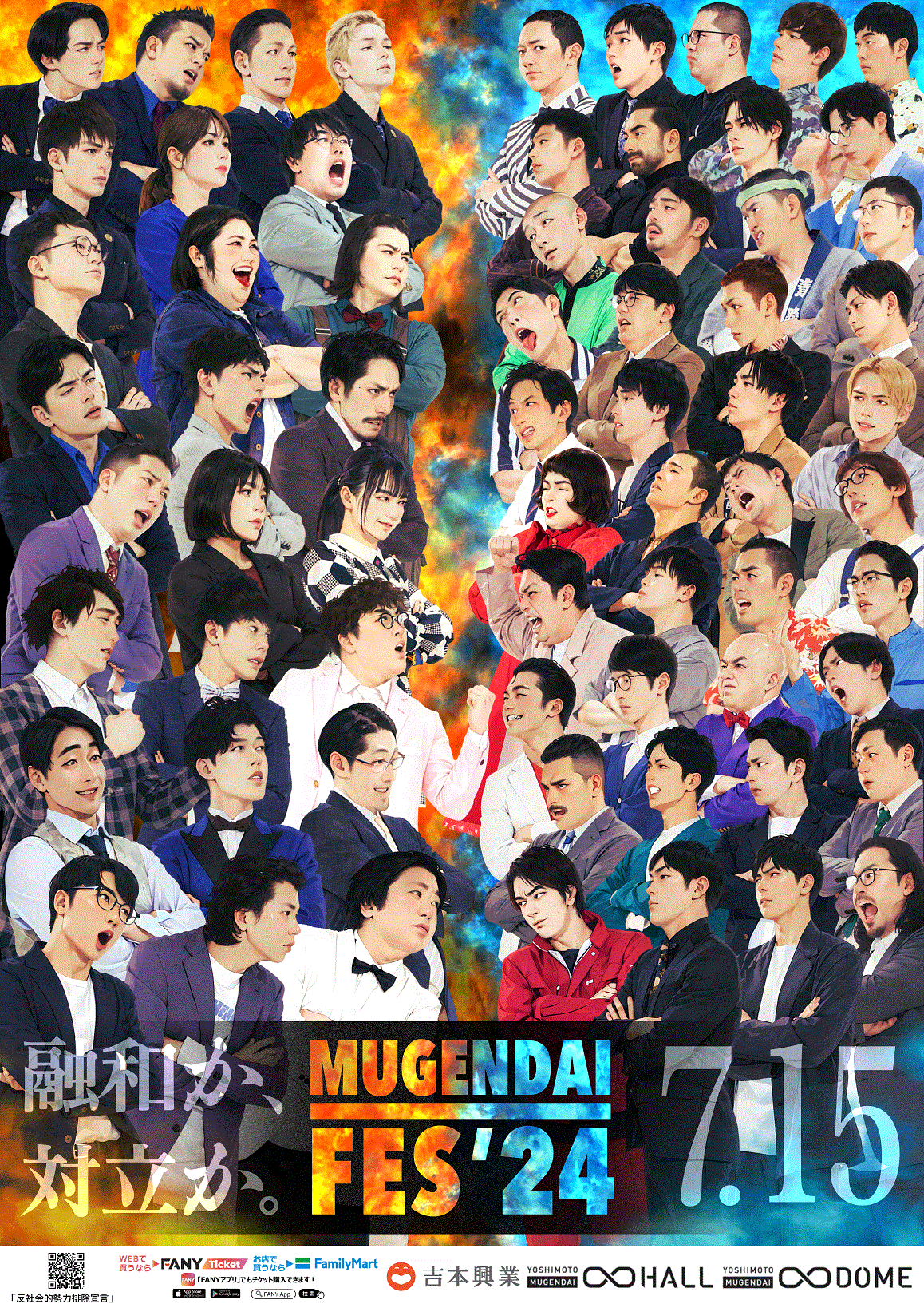 この度、東京・渋谷からお笑いのトレンドを発信する劇場・ヨシモト∞ホール・ヨシモト∞ドーム(以下、ホール・ドーム)では、 2024年7月15日(月祝) に、ムゲンダイレギュラーメンバーが大集合の一大イベント 「ムゲンダイフェス’24」を開催いたします。