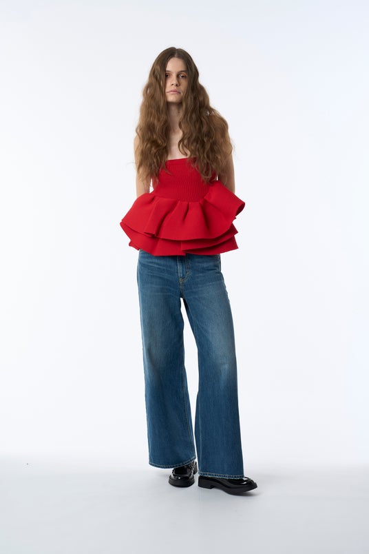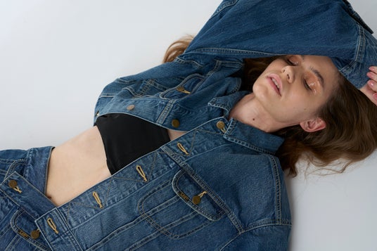 デニムジャケットとビスチェは、1940年代後半の初期モデルからほぼ変わらないデザインを維持し続けている王道デニムジャケット“101-J“をアレンジ。