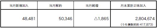 2016 年3 月の加入・解約と月末時点の加入件数につきまして、以下の通りお知らせします。