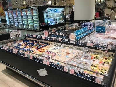 長期保存ができ、使いたいときに使いたい分だけ解凍してすぐに調理いただける冷凍食材を豊富に品揃えします。焼き鳥串、ホルモン、馬刺しなどの冷凍肉をはじめ、塩銀鮭やからすかれいの切り身、ほたてなどを店舗にて真空パックする「フローズンフィッシュ」、国産野菜の冷凍野菜など冷凍食材を幅広く展開します。
