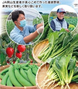 農産売場では、JA岡山(花野果 はなやか)による産直野菜・果実を新たに取り扱うほか、日本四大干拓地の一つと言われる岡山県笠岡の干拓地で、再生可能エネルギーを活用して一年を通して安定的に美味しい野菜を栽培する新しい農業「SARA」の野菜を販売します。