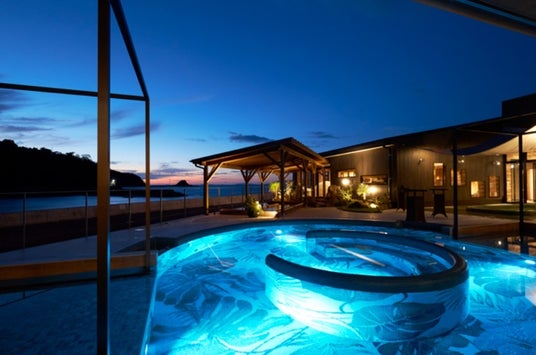 長崎県伊王島の「i+Land nagasaki」内にあるスパ施設です。地下1,180mから湧く天然温泉を使った展望露天風呂や家族風呂、ハーブテント、テントサウナで癒やしを満喫。海を望む全天候型プールは水着で楽しめます。さらに「BOOK&岩盤TERRACE」では1万冊の漫画と個室キャビンがあり時間無制限でのんびりできます。Ark Land Spaの岩盤浴は低温で、マンガを読みながら過ごせるほか、リーディングライト付き椅子型岩盤浴も設置されています。